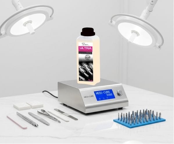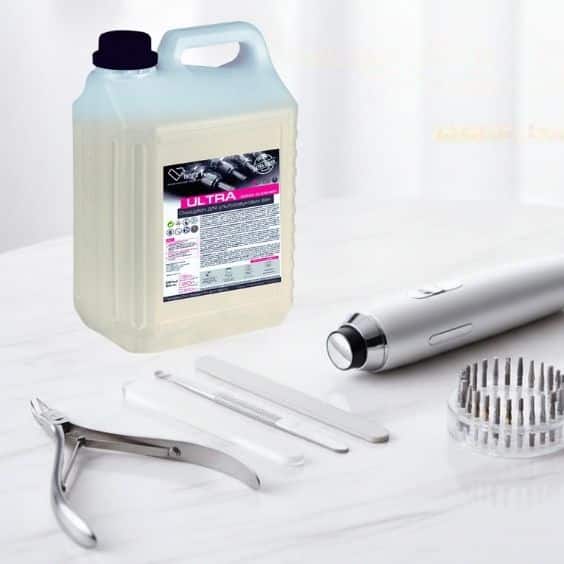 Використання спеціалізованої хімії в ультразвуковій ванні — це єдиний спосіб вибити “забитий” опил з насічок алмазних фрез та замків ножиць. Даний засіб для ПСО манікюрних інструментів має унікальну формулу, яка розчиняє жировий наліт, залишки шкіри та засобів для кутикули та видаляє залишки гелю, акрилу, шкіри, птеригія з робочої поверхні фрез. Це критично важливо, адже залишки біологічного матеріалу на інструменті знижують ефективність подальшої стерилізації та псують ваше обладнання.